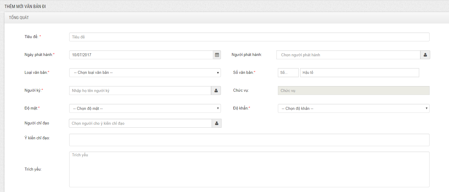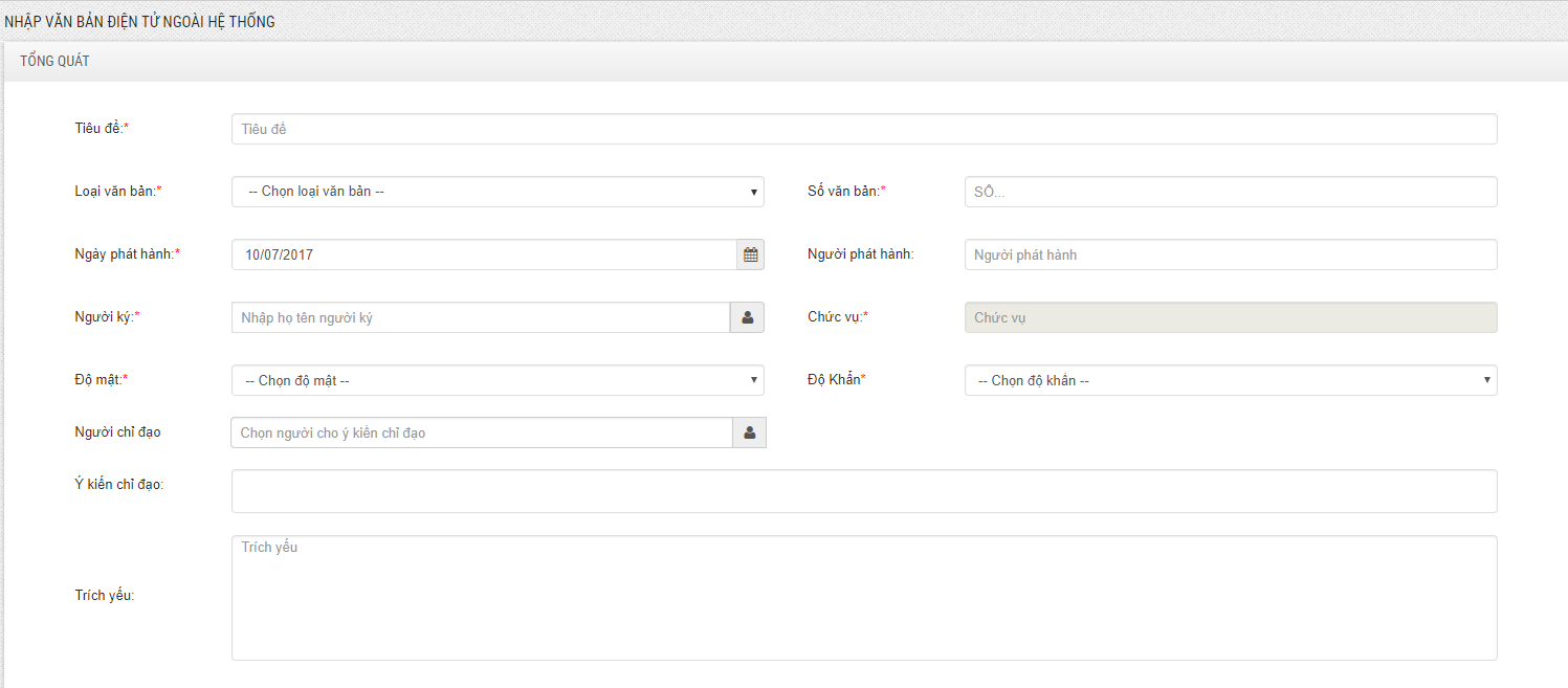 - Trích yếu: Nhập nội dung trích yếu của văn bản (nếu có)