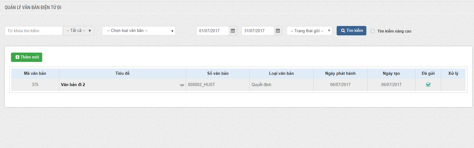 - Truy cập đường dẫn: http://vpdt.hust.edu.vn/ Văn bản điện tử/Văn bản đi