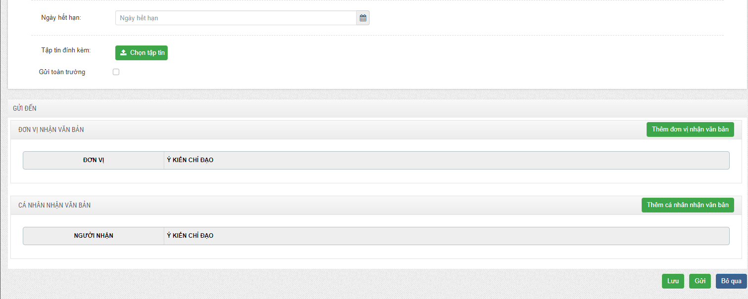 - Ngày hết hạn: Chọn ngày hết hạn xử lý văn bản (nếu có)