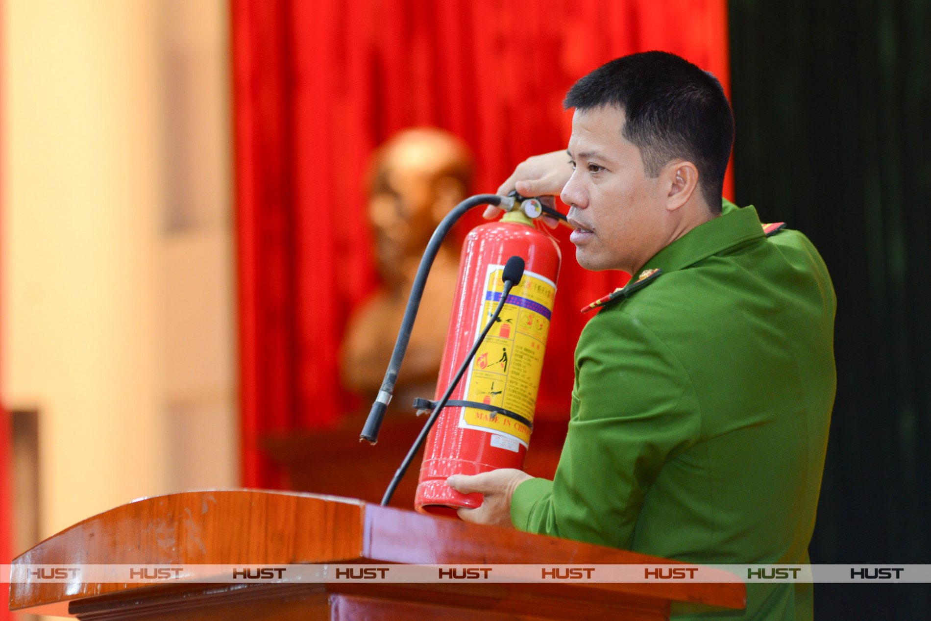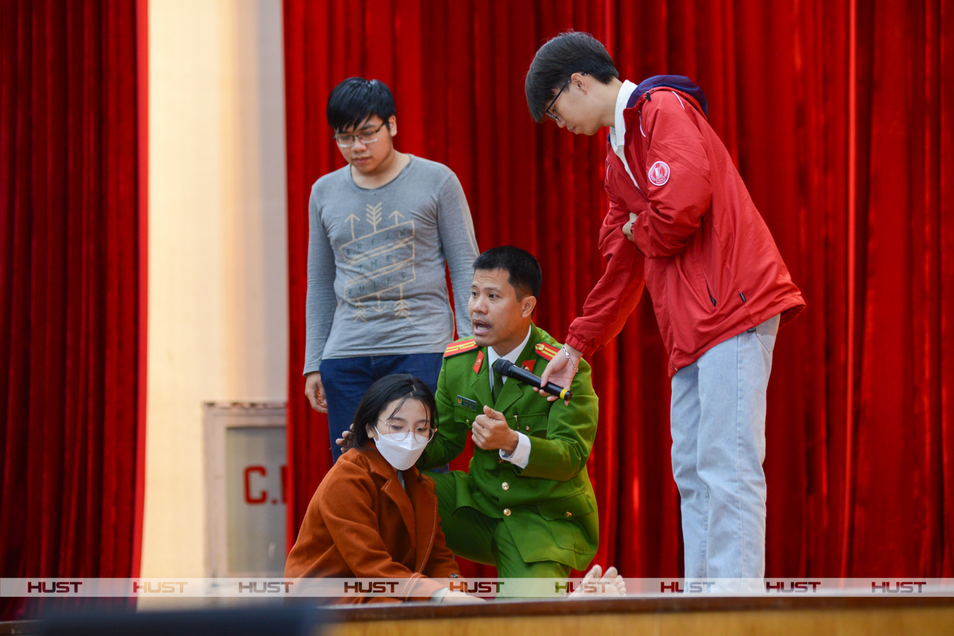 Tại buổi tập huấn, các chiến sĩ PCCC cung cấp kiến thức giúp sinh viên nâng cao nhận thức, ý thức và trách nhiệm của sinh viên trong công tác đảm bảo an toàn phòng cháy và chữa cháy tại nơi ở, khu dân cư và nơi học tập, làm việc.