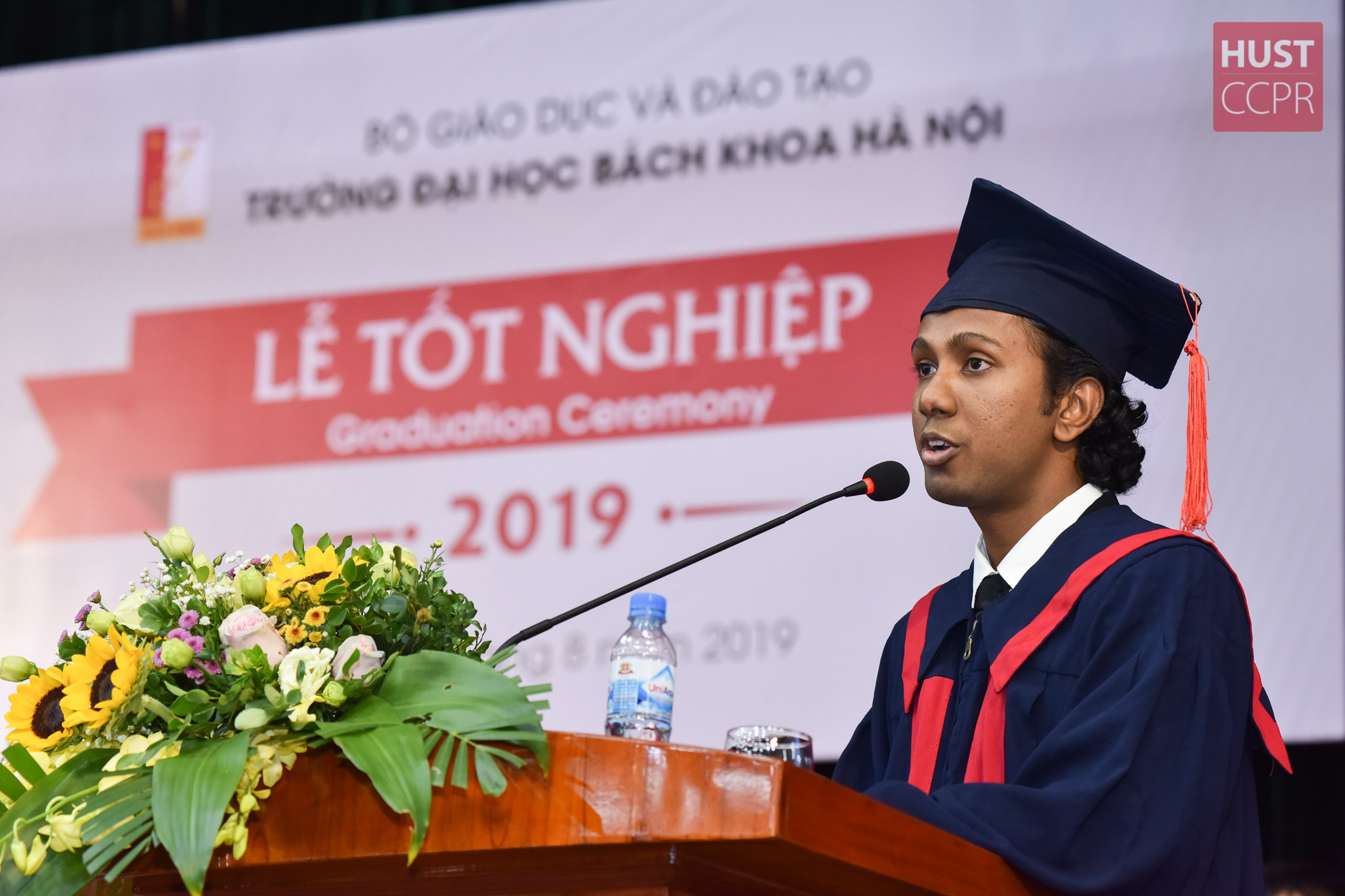Thay mặt các tân cử nhân, kỹ sư nhận bằng tốt nghiệp, tân kỹ sư Onila Rasanjala - CTTT ĐTVT K59 gửi lời cảm ơn sâu sắc đến các thầy, cô giáo trong suốt thời gian theo học tại Trường. Onila Rasanjala chia sẻ: “Tự hào được học tập tại mái Trường ĐHBK Hà Nội, được sống những năm tháng tuổi trẻ của mình trong đại gia đình Bách Khoa, chúng em bày tỏ lòng biết ơn sâu sắc nhất đến các thầy, cô giáo và gia đình đã luôn chia sẻ, động viên, dìu dắt từ những ngày đầu tiên nhập học cho đến hôm nay cầm tấm bằng tốt nghiệp. Bằng tất cả lòng tự hào và sự biết ơn đó, chúng em sẽ tiếp tục nỗ lực hơn nữa trên chặng đường phía trước để mãi mãi tự hào là những kỹ sư Bách Khoa Hà Nội, Việt Nam”