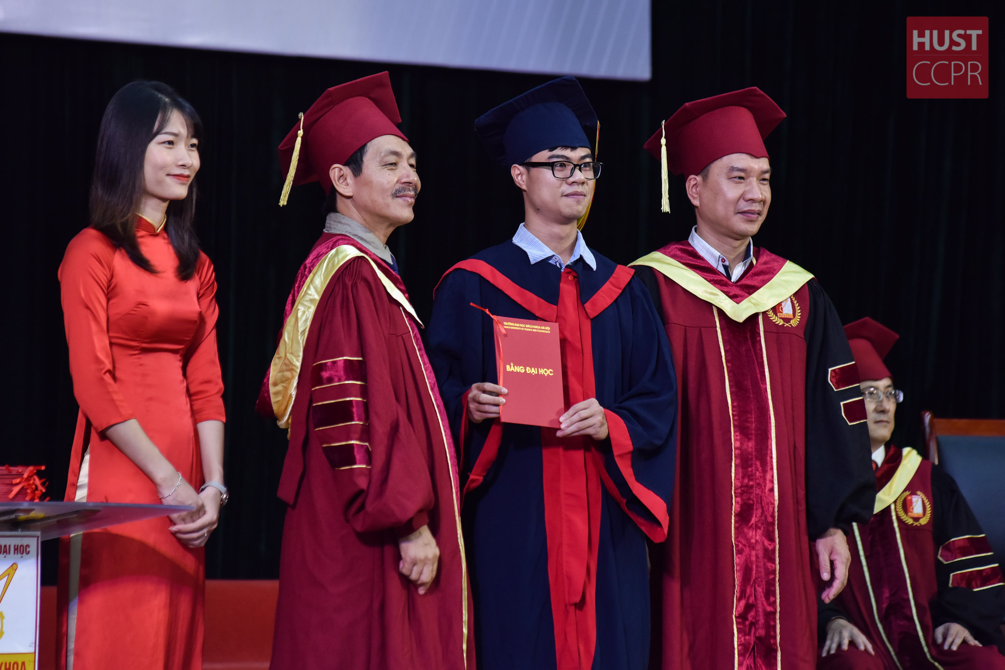 Trong hai ngày trao bằng tốt nghiệp, các tân cử nhân, kỹ sư đã nhận tấm bằng tốt nghiệp từ chính Phó Hiệu trưởng và lãnh đạo các Viện đào tạo trao.