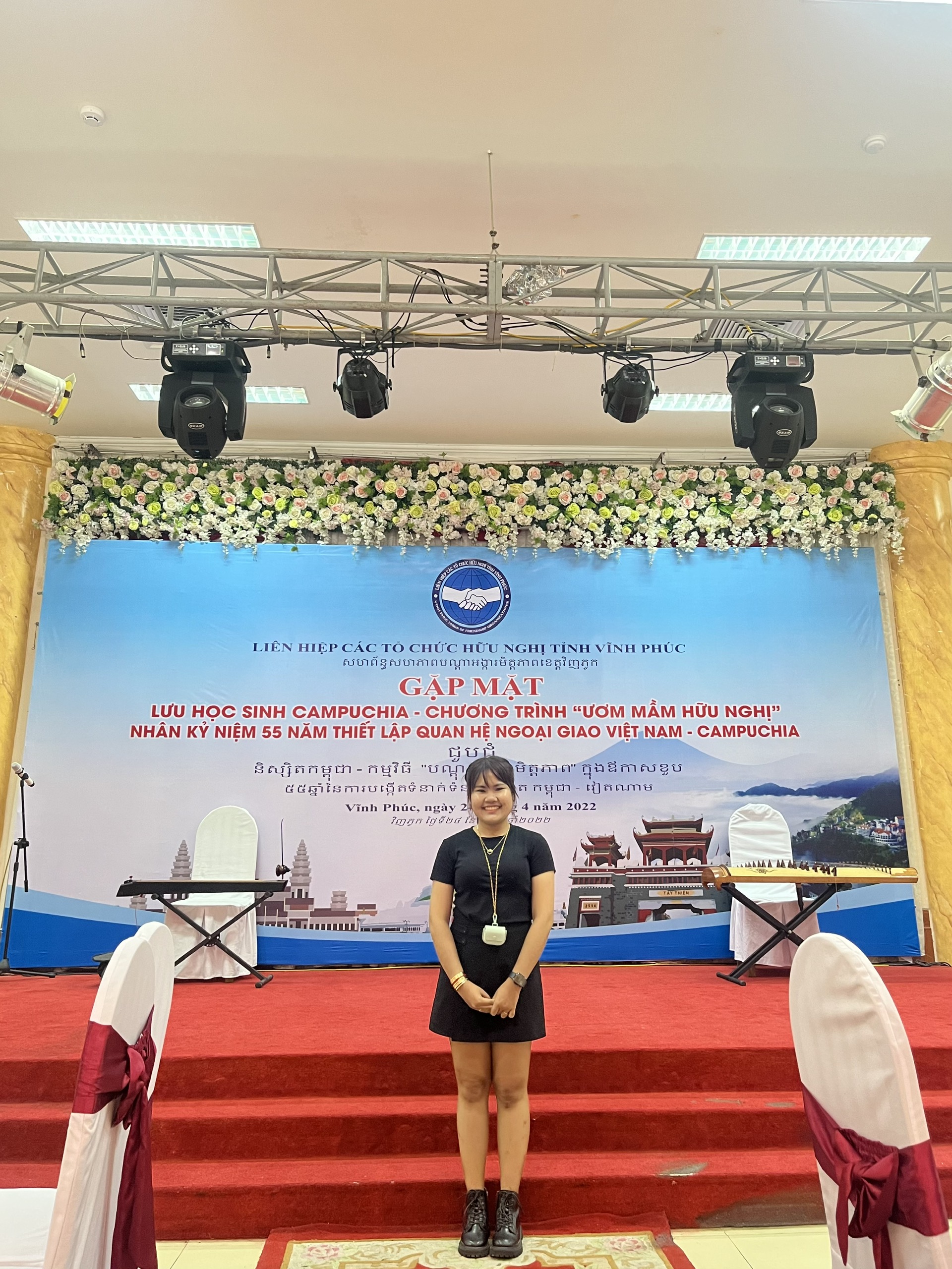 Sovannthyda tại buổi lễ gặp mặt lưu học sinh Campuchia ở Vĩnh Phúc năm 2022. Ảnh: NVCC.