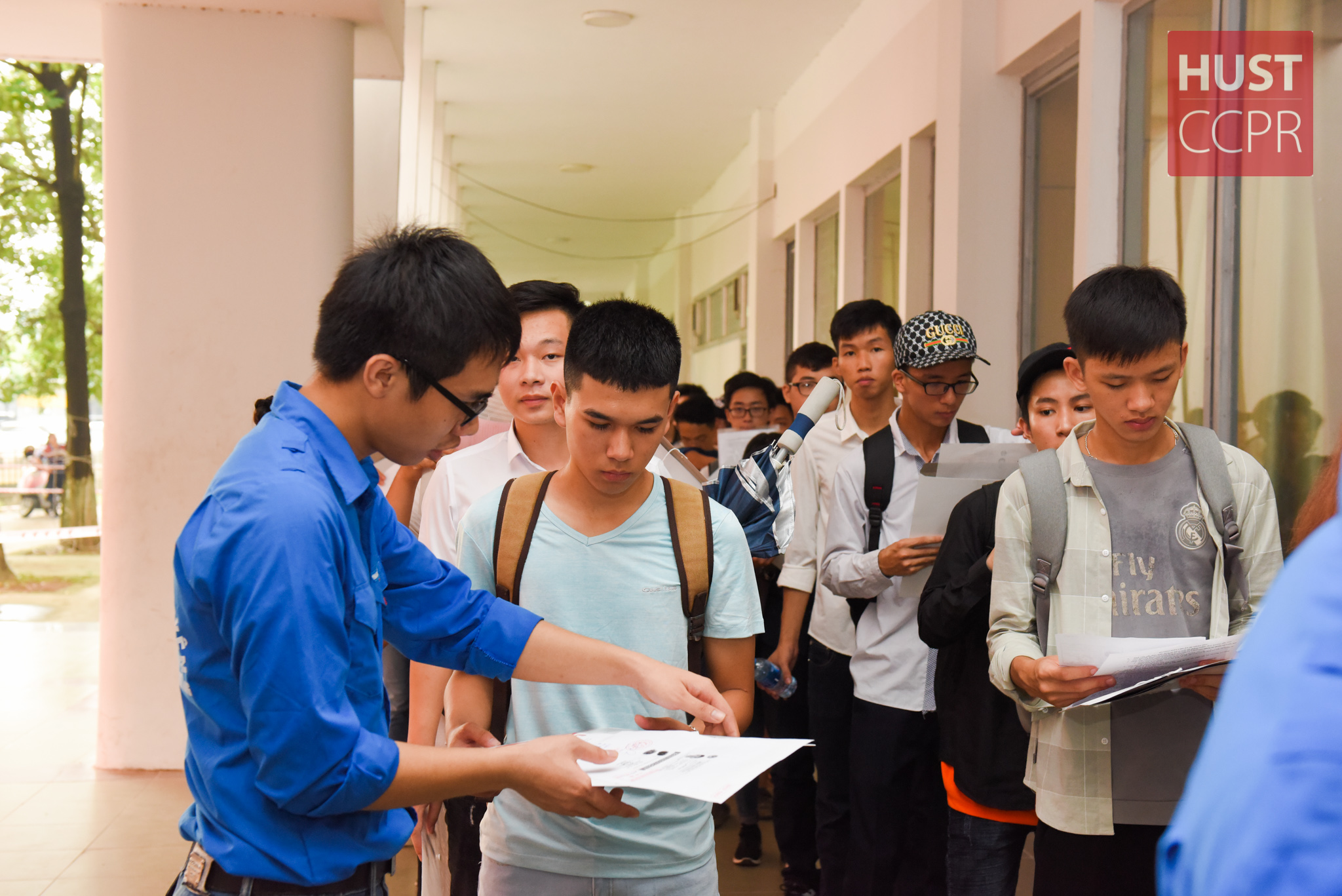 Nhằm tạo điều kiện thuận lợi cho các tân sinh viên nhập học, Trường ĐHBK Hà Nội đã xây dựng kết hoạch, bố trí hội trường rộng rãi để tiếp đón và tạo điều kiện cho các em có thể làm thủ tục nhanh chóng, đơn giản nhất. Năm nay, Trường cho các em đăng ký nhập học trực tuyến qua cổng thông tin đào tạo của Trường, giúp các em chuẩn bị tốt hồ sơ nhập học, tránh tình trạng xếp hàng chờ đợi lâu. Đối với những em chưa kịp đăng ký trực tuyến, Trường cũng hỗ trợ tối đa giúp các em hoàn thiện hồ sơ.
