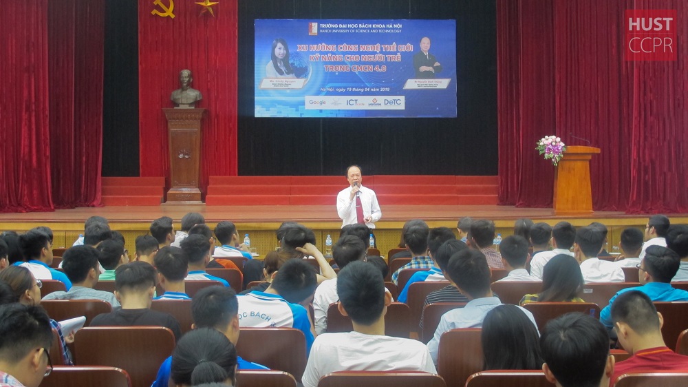 Sáng nay (19/4/2019), Trường ĐHBK Hà Nội phối hợp với Hội Truyền thông số Việt Nam (VDCA), Trung tâm Hợp tác phát triển ICT (ICTcode), Tập đoàn Google và Ngân hàng TMCP Bưu điện Liên Việt (LienVietPostBank) tổ chức buổi tọa đàm “Xu hướng công nghệ thế giới, kỹ năng cho người trẻ trong Cách mạng công nghiệp 4.0” tại Hội trường C2 nhằm giúp cho sinh viên định vị được bản thân mình, phát huy được ưu thế và tìm ra được hướng đi phù hợp cho tương lai.