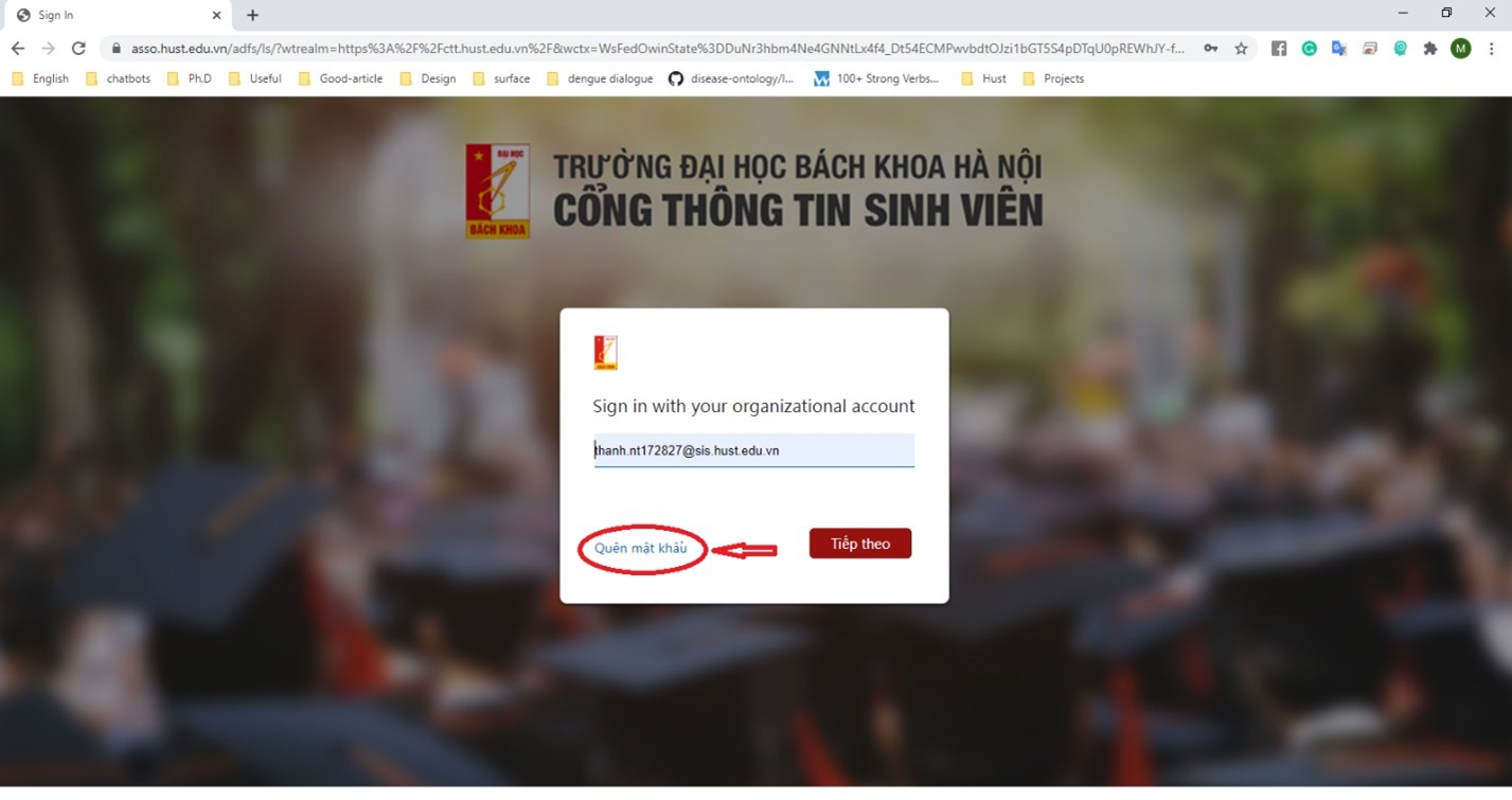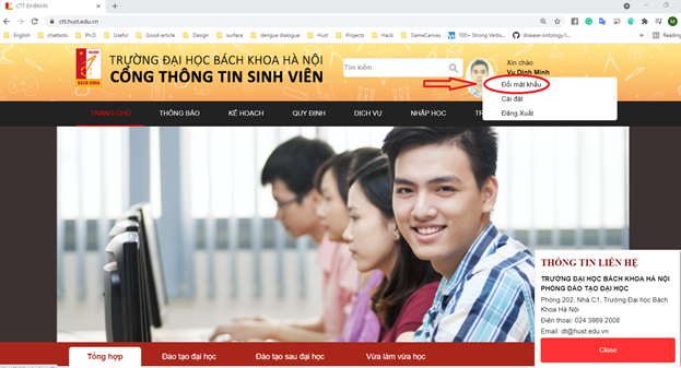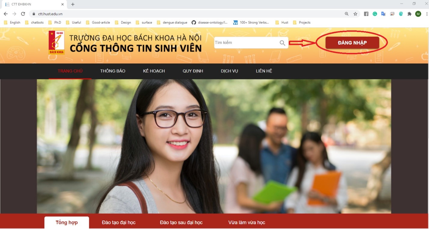 Bước 1: Đăng nhập vào địa chỉ ctt.hust.edu.vn