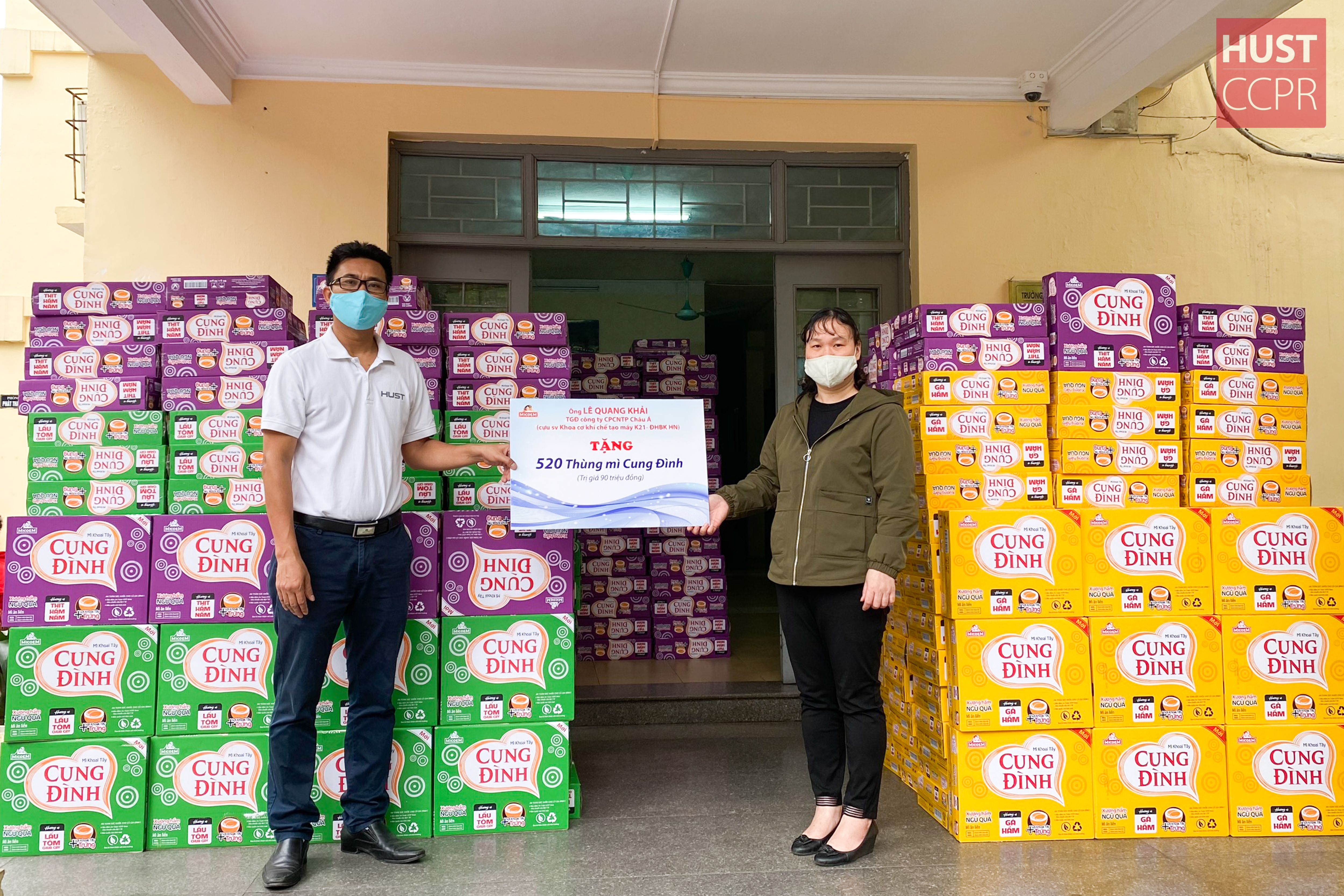 Hưởng ứng lời kêu gọi đóng góp của nhà trường trong dịch bệnh COVID-19, sáng ngày 16/4, 520 thùng mỳ được trao tặng cho hơn 500 sinh viên đang ở tại Ký túc xá trường Đại học Bách khoa Hà Nội. Anh Lê Quang Khải, cựu sinh viên K21 ngành Chế tạo máy, Tổng Giám đốc Công ty TNHH Công nghệ thực phẩm Châu Á, đồng thời là Phó Chủ tịch Ban Điều phối Mạng lưới Cựu sinh viên ĐHBK Hà Nội ủng hộ, trao tặng cho các sinh viên.