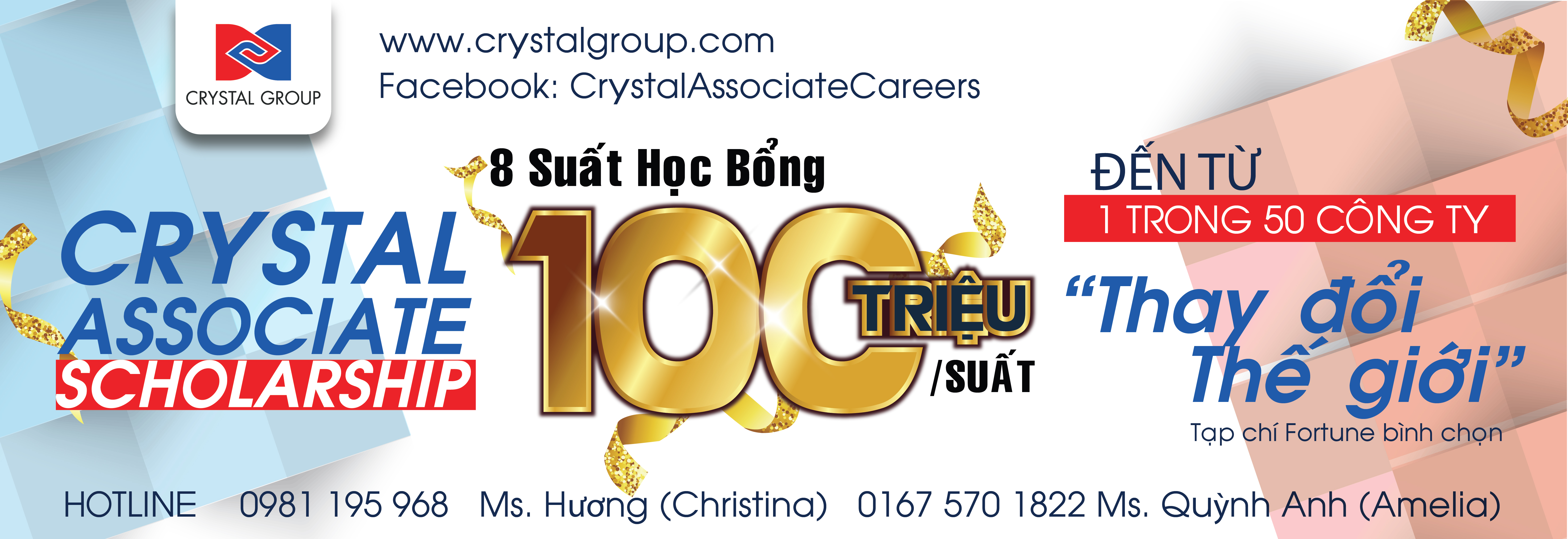 Nhằm hỗ trợ chi phí sinh hoạt, phát triển khả năng ngoại ngữ, đồng thời tạo cơ hội thực tập và việc làm hấp dẫn khi ra trường cho những Sinh viên Tài năng, Tập đoàn Crystal Internationaltriển khai chương trình Học bổng Crystal Associate.