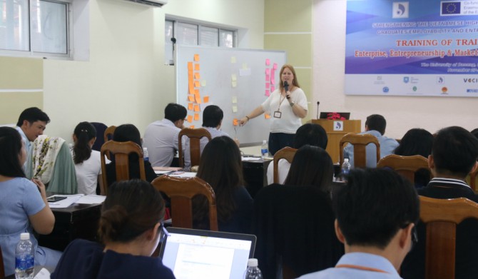 Từ ngày 27 - 30/11, chương trình tập huấn lần 3 trong khuôn khổ Dự án V2WORK (*) xoay quanh chủ đề doanh nghiệp, khởi nghiệp và phát triển kỹ năng marketing đã được tổ chức tại Đại học Đà Nẵng.