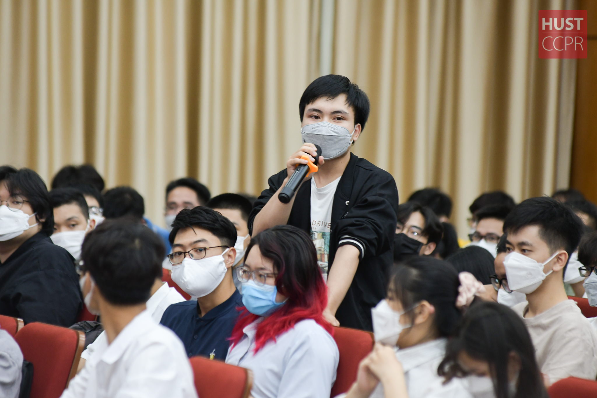 Sinh viên đặt câu hỏi cho thầy cô tại tọa đàm BK Club Talk ngày 13/5. Ảnh: Duy Thành
