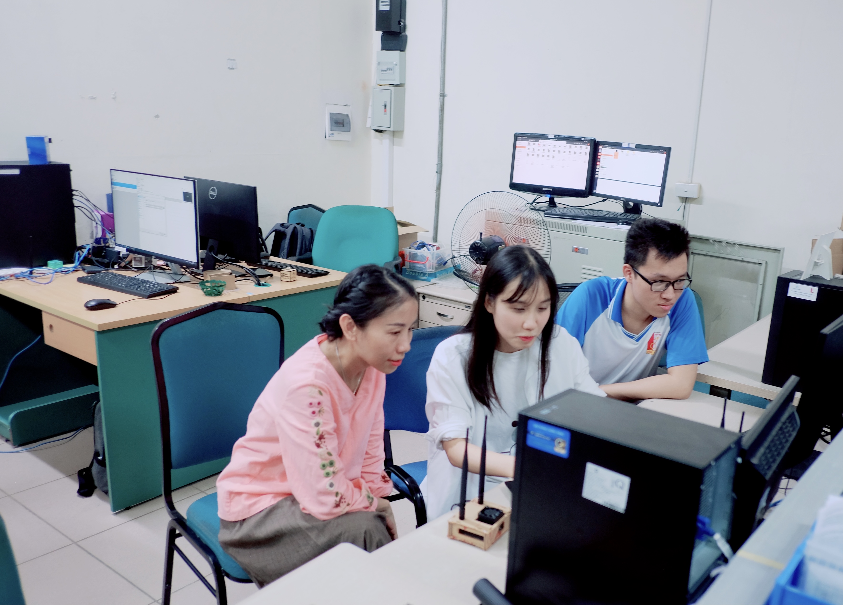 Chính vì thế, nghiên cứu đề tài đúng thời điểm đại dịch Covid phức tạp, nhưng Hà, Hoàng cùng các bạn đều nỗ lực thay nhau lên FIL để làm các thuật toán, chạy mô phỏng…, làm việc từ xa teamviewer vào máy tính trên lab, nhóm nghiên cứu đều trong tình trạng làm việc đến 2-3 giờ sáng và thường xuyên họp cùng cô giáo vào 12h đêm.