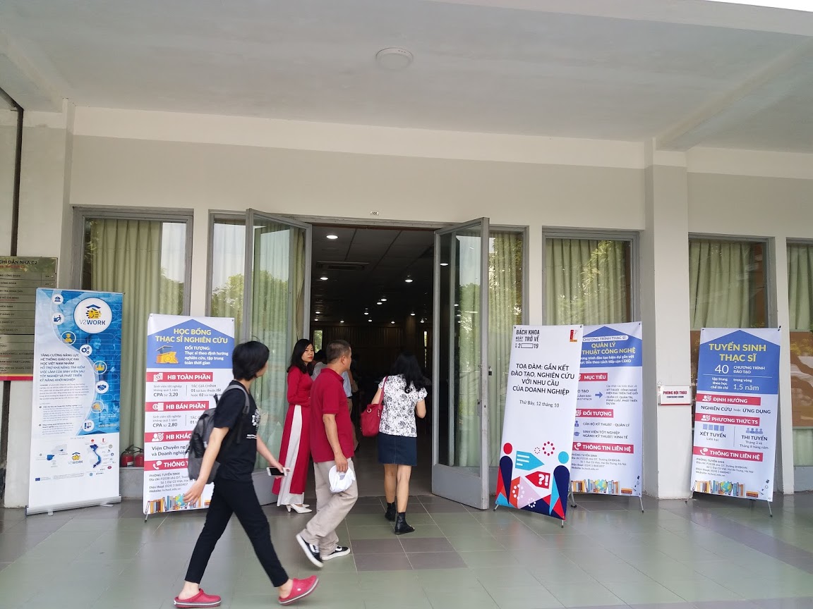 Trong khuôn khổ Dự án V2WORK (*) tọa đàm “Gắn kết đào tạo, nghiên cứu với nhu cầu doanh nghiệp” được Trường ĐH Bách khoa Hà Nội tổ chức, thu hút sự tham gia của nhiều cựu sinh viên là lãnh đạo các tổ chức, doanh nghiệp…., như cựu sinh viên Phạm Thế Duyệt – Nguyên thường trực Bộ chính trị, Nguyên Chủ tịch Ủy ban Trung ương Mặt trận Tổ quốc Việt Nam và cựu sinh viên Nguyễn Quân – Nguyên Bộ trưởng Bộ Khoa học và Công nghệ, TS Võ Sỹ Nam - thành viên Viện nghiên cứu Big Data thuộc Tập đoàn Vingroup…