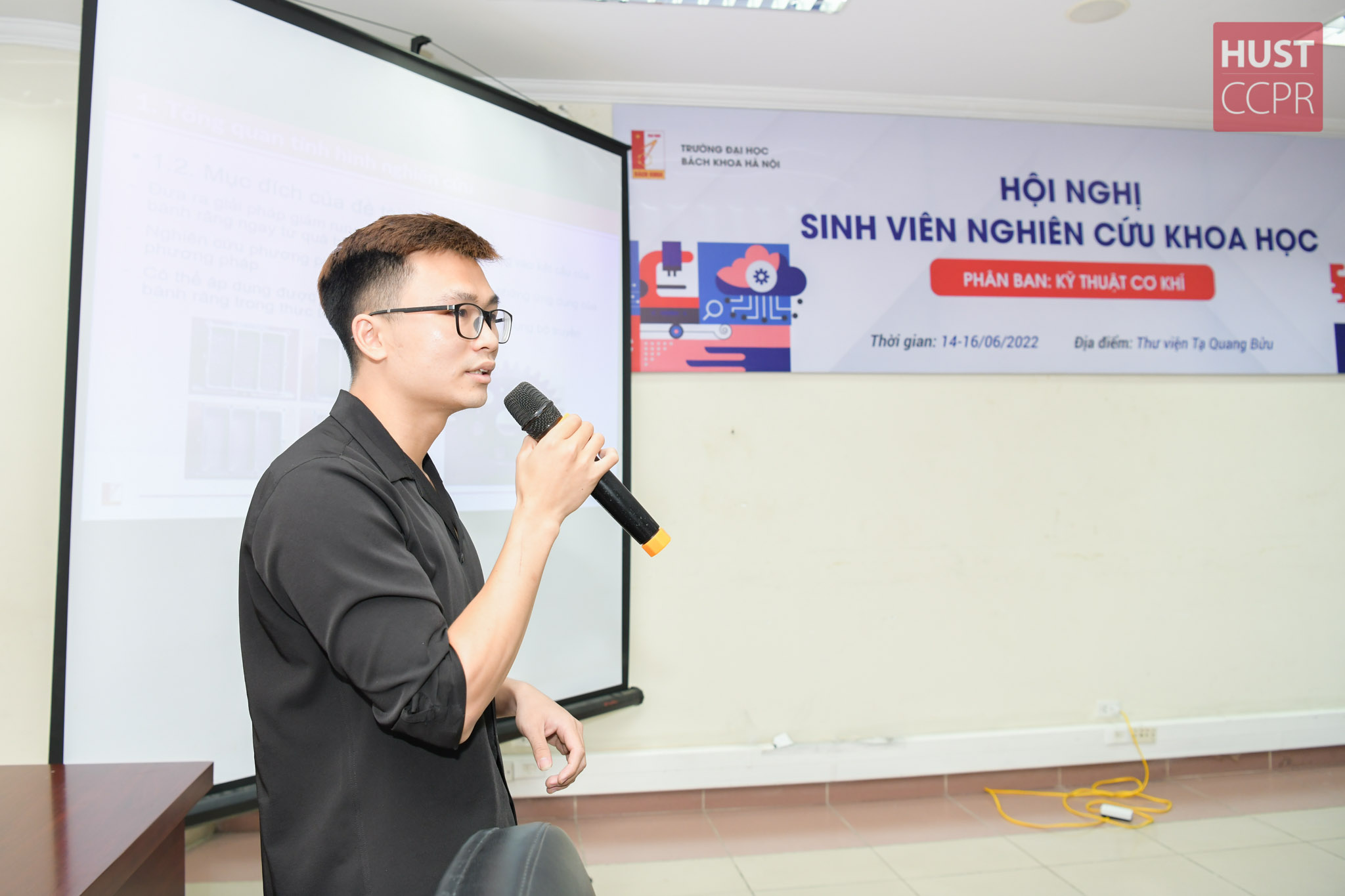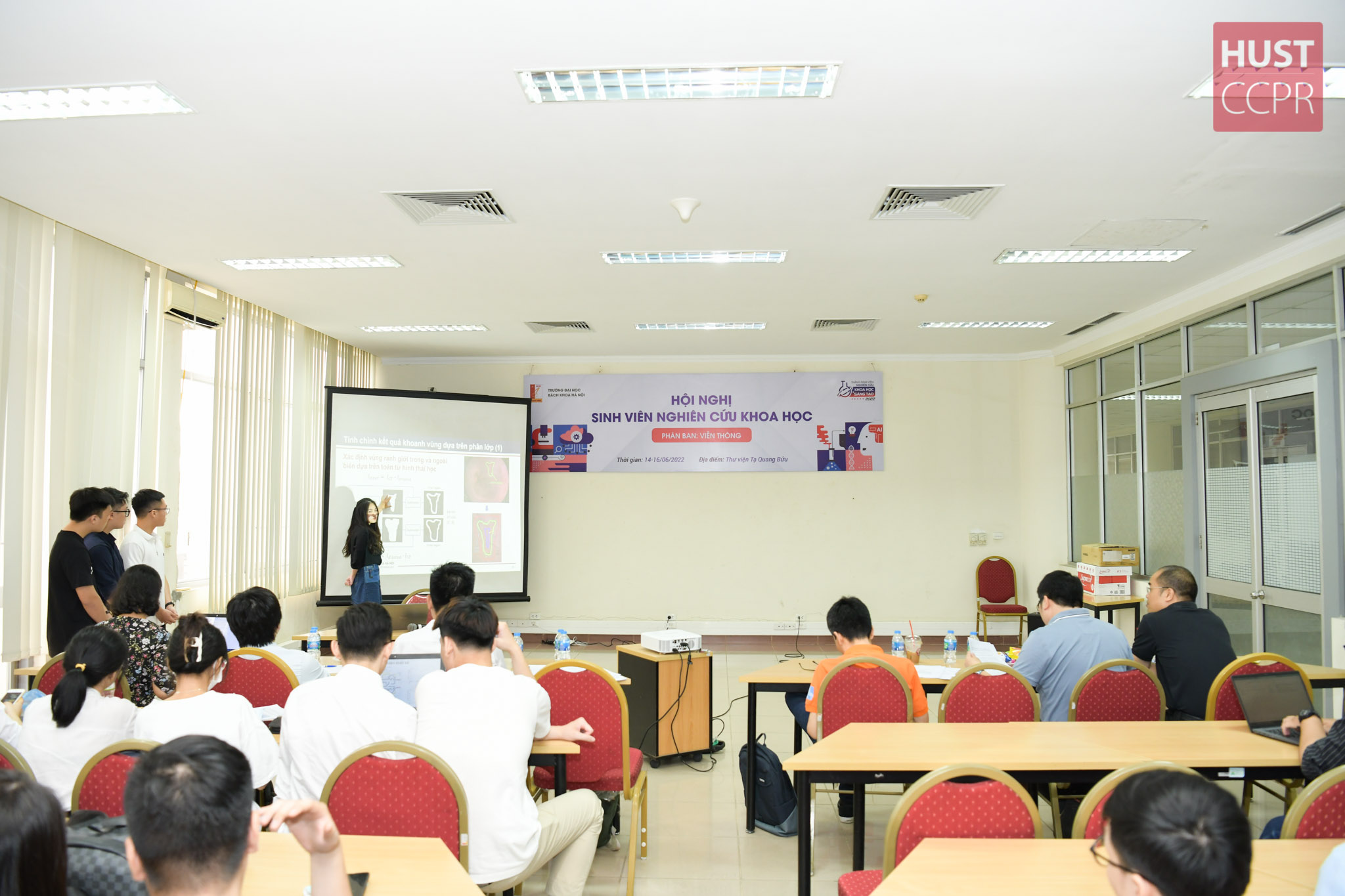 Sáng nay (14/6/2022), sinh viên Trường Đại học Bách khoa Hà Nội hồ hởi tham gia Hội nghị sinh viên NCKH lần thứ 39, mang các đề tài NCKH của các nhóm nghiên cứu, của cá nhân thuyết trình trước các thầy cô giáo về tính độc đáo, sáng tạo và những ứng dụng thực tế trong cuộc sống hàng ngày. Đây là hoạt động thường niên của Đại học Bách khoa Hà Nội, nhận được sự hưởng ứng của đông đảo sinh viên toàn trường.