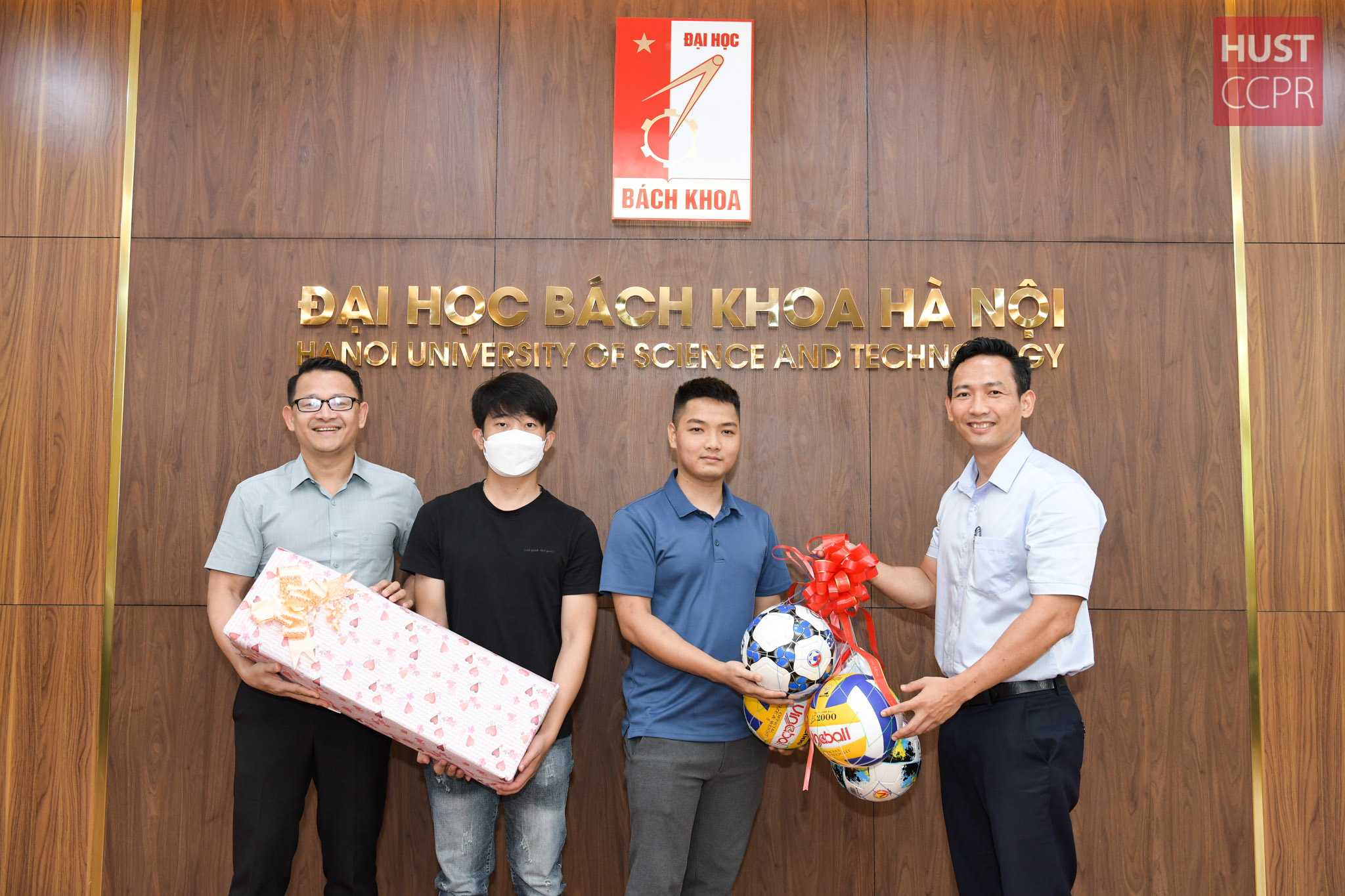 Trước khi chia tay các sinh viên tham gia khóa đào tạo Sĩ quan dự bị, PGS. Nguyễn Phong Điền thay mặt Trường Đại học Bách khoa Hà Nội cùng hai thầy Phó Hiệu trưởng Trường Cơ khí và Trường Công nghệ Thông tin và Truyền thông trao tặng những món quà động viên tinh thần các sinh viên.