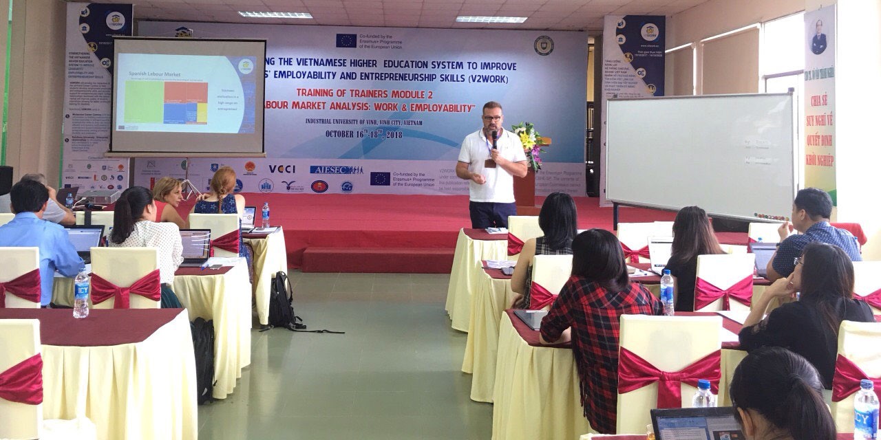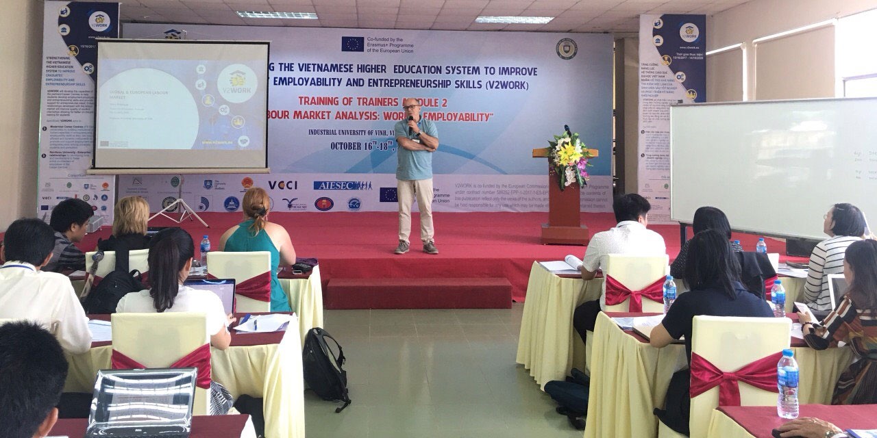 Từ ngày 16/10/2018 đến ngày 18/10/2018 tại trường Đại học Công nghiệp Vinh (TP.Vinh) dự án V2WORK đã tổ chức khóa đào tạo về "Phân tích thị trường lao động", nằm trong khuôn khổ các hoạt động của dự án: "Tăng cường hệ thống giáo dục đại học Việt Nam nhằm nâng cao kỹ năng sử dụng lao động và làm việc cho sinh viên tốt nghiệp".