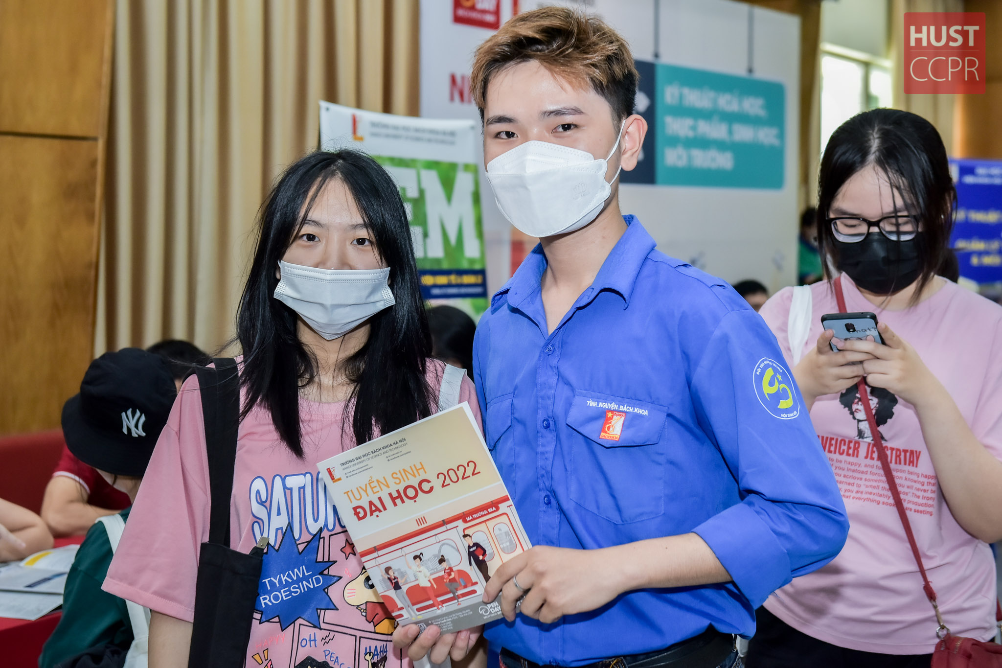 Còn tại gian tư vấn thông tin chung, rất nhiều học sinh năm nay lên lớp 12 đến để tìm hiểu thông tin về các Viện/ngành, phương thức tuyển sinh năm 2023 để kịp thời có hướng ôn tập, chuẩn bị thi vào Bách khoa.