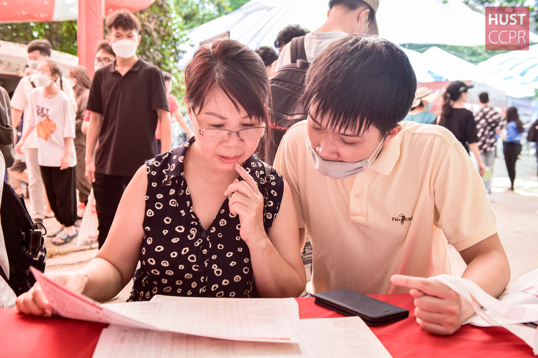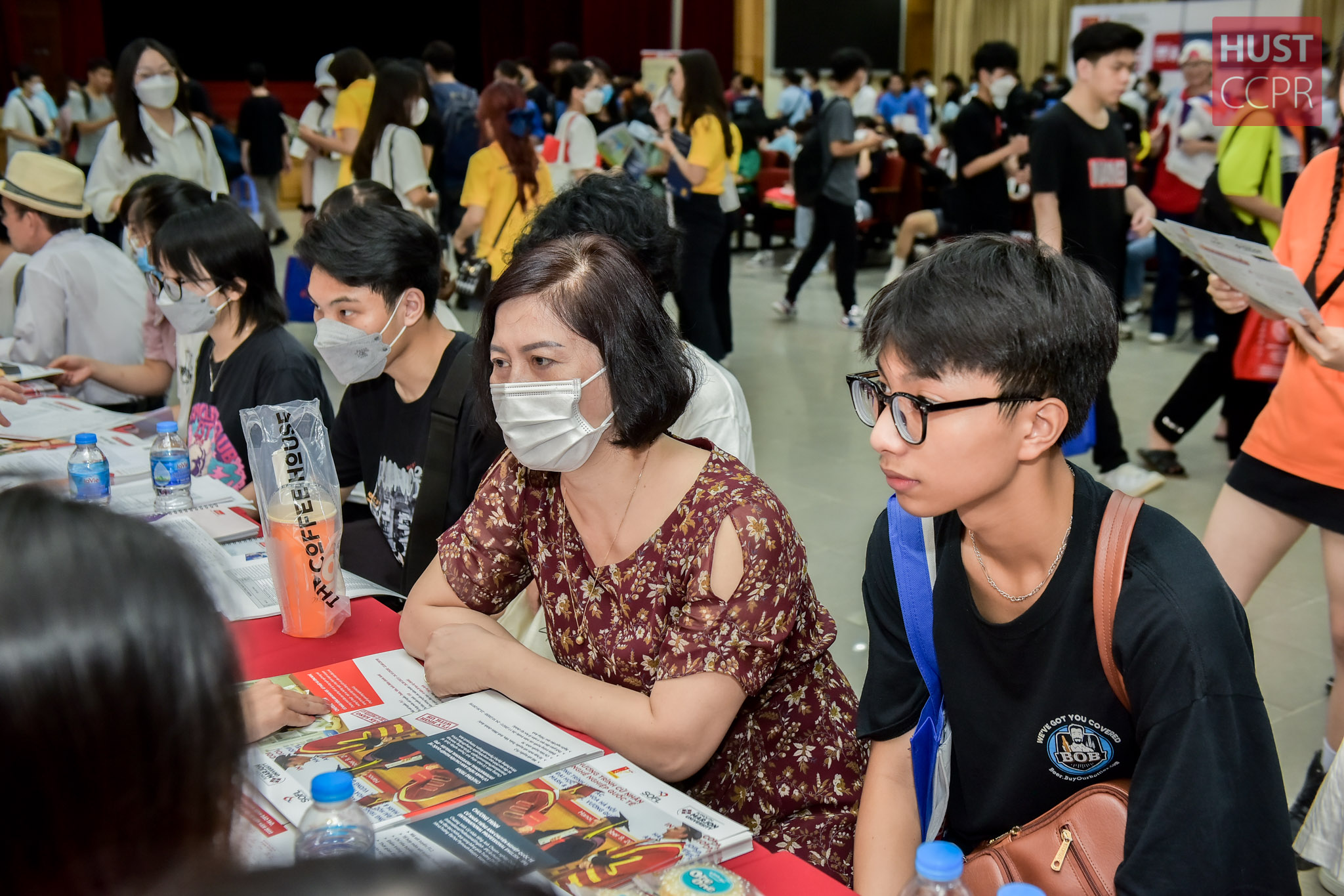 Cả mẹ và con trai cùng nghe tư vấn từ các thầy cô giáo Bách khoa